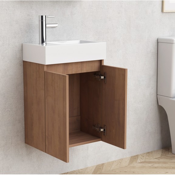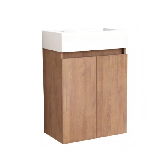 Κρεμαστό έπιπλο μπάνιου από PVC με μηχανισμό soft close και γυαλιστερό λευκό νιπτήρα ρητίνης 4241-2