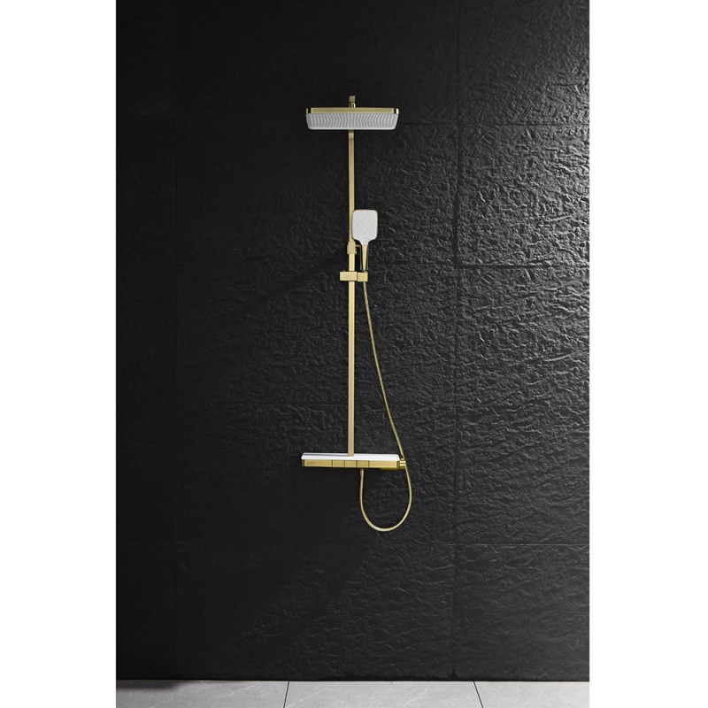 Σύστημα ντουζ τηλεσκοπικό με κώδωνα, τηλέφωνο ντουζ,θερμοστατική μπαταρία και γυάλινο ράφι.