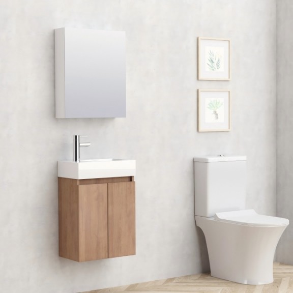 Κρεμαστό έπιπλο μπάνιου από PVC με μηχανισμό soft close και γυαλιστερό λευκό νιπτήρα ρητίνης 4241-2